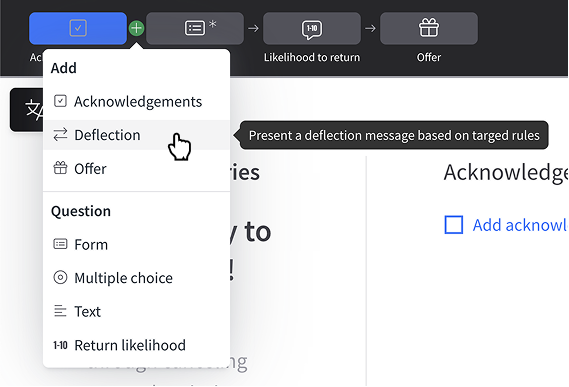 To customize deflection rules, click Flow in the left navigation and then click a deflection step or create a new one.